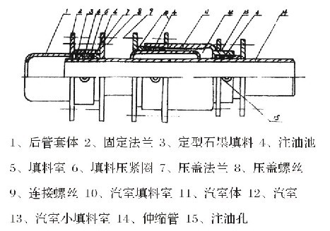 在國內(nèi)近期,生產(chǎn)出LTW高溫堵漏劑,它的耐溫30O——600℃,工作極限壓力是10MPa。鞏義市鑫科管道設(shè)備廠將高溫堵漏劑應(yīng)用在補償器上,將直流式無推力補償器,改制成注油式直流介質(zhì)無推力補償器,解決了補償器長期工作,出現(xiàn)微小的滲漏問題。鞏義市晨光波紋管公司將LTW高溫堵漏劑,用60MPa。的高壓注射槍,將油劑注射到填料室內(nèi),使填料與料室內(nèi)徑和伸縮管外徑壓緊,油劑本身無毛細管,又有熱脹冷縮的性質(zhì),故造成補償器長期工作中,不產(chǎn)生滲漏。