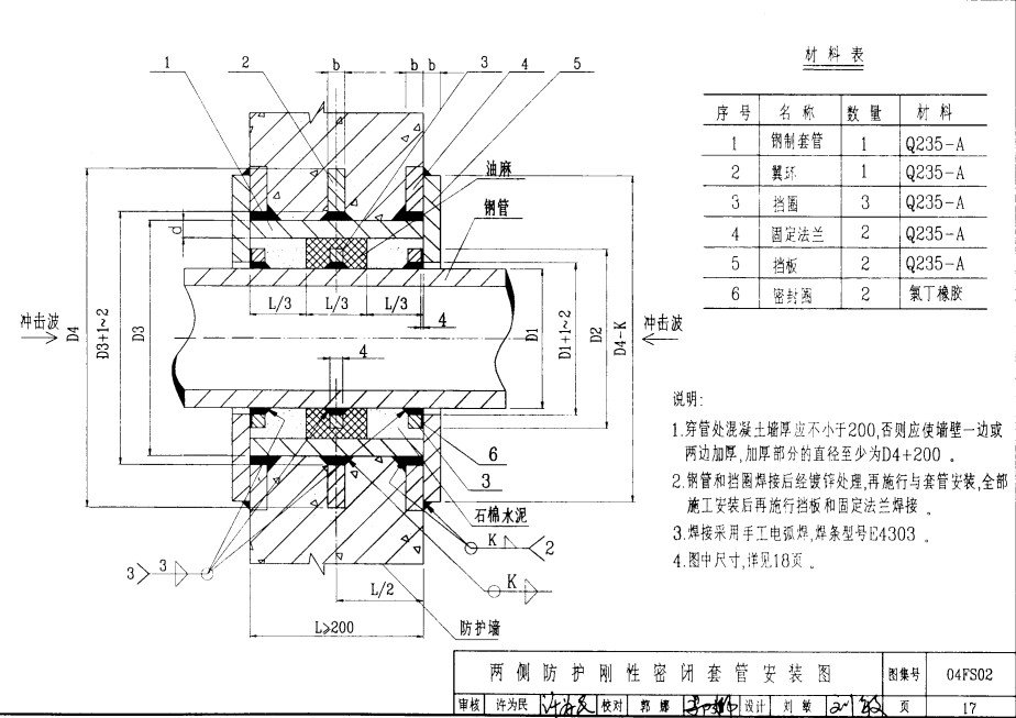 1、剛性密閉套管是按照國家標準04FS02制造生產(chǎn),材料采用Q235-A。