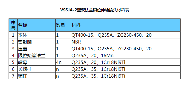 產(chǎn)品名稱:VSSJA-2型雙法蘭限位伸縮接頭